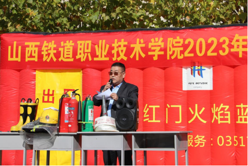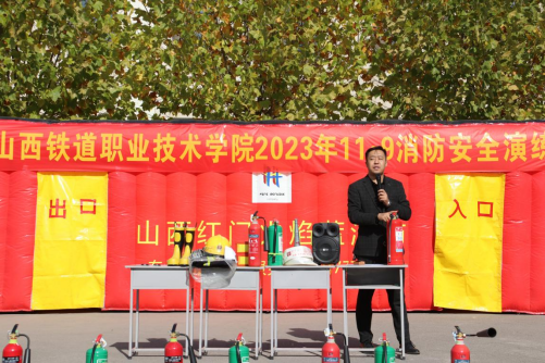 参加活动的领导有学院党委书记岳高社、院长任利成、党委副书记张耀川、纪委书记杜秀群、副院长王福成及学院师生代表和重点岗位工作人员。本次活动由王福成副院长主持,山西省消防协会杨鑫处长、杨家峪派出所宋鑫队长莅临现场指导。