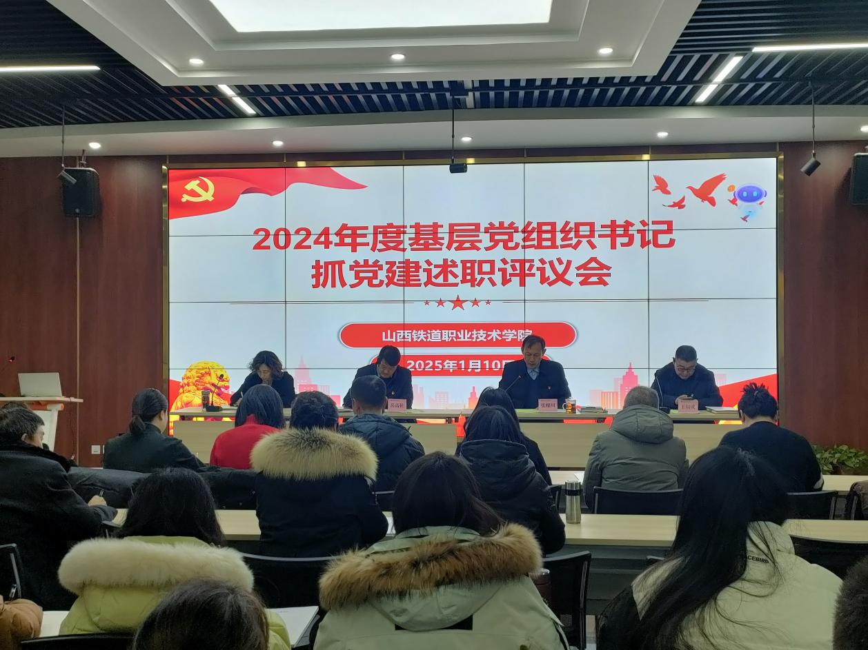 党委书记岳高社在听取了各党总支的述职报告后,对过去一年党建工作总体点评,进行总结。他指出,过去一年,我院党建工作呈现出以下四个特点:第一,强基见成效。严抓换届选举,筑牢组织基石,分别于6月、12月顺利完成了党总支和党支部换届工作。第二,班子显功能。班子成员间分工明确、团结协作,形成工作合力,共同推动支部工作的发展,凝聚力战斗力不断增强。第三,工作有亮点。打造“育人先锋”党建品牌,以高质量党建引领高质量发展,成功入选全省高校党建工作标杆院系创建单位、全省高校党建工作样板支部、全省高校“双带头人”教师党支部书记工作室创建单位各1项。第四,队伍展活力。队伍成员能够积极学习党的最新理论成果,不断提升政治素养和理论水平,在党建工作中,思维活跃,勇于探索新的工作方法和思路。同时对下年度党建工作提出几点要求:一是要在政治性上下功夫。严格政治学习,严肃政治生活,深入学习党的最新理论成果,用习近平新时代中国特色社会主义思想凝心铸魂,深入贯彻落实党的二十届三中全会重要精神,不断加强党性修养,深刻领会“两个确立”的决定性意义,增强“四个意识”,坚定“四个自信”,坚决做到“两个维护”。二是要在融合性上把准脉。围绕立德树人根本任务,认真落实好党的教育方针,不断推进党建和业务工作深度融合,推动党员更加有为、党组织更加有力、党建工作更加有效,助力学院教育事业高质量发展。三是要在创新性上求突破。面对新形势新情况新问题,坚持守正创新,强化改革创新的思维、理念和方法“攻难点”、“通堵点”、“除痛点”,在创新中求突破,推动取得新成效。四是要在战斗力上再提升。有组织力、凝聚力才有战斗力。我们要坚决扛起全面从严治党第一责任,落实好基层党支部职责,真正把党建工作抓起来,不断加强党员教育管理和党风廉政建设,在新征程上奋力书写以进一步全面深化改革推进中国式现代化山西铁院实践的新篇章。