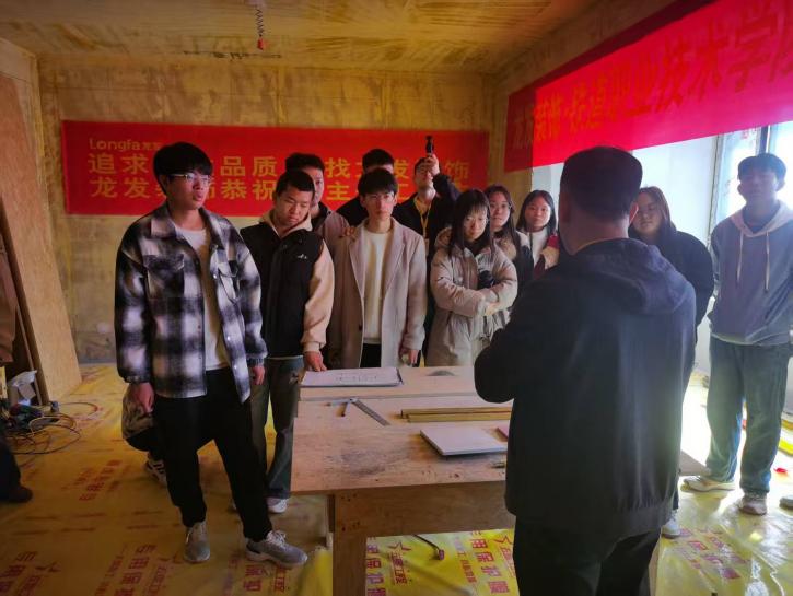 课程以龙发装饰有限公司在施的住宅设计项目为载体,学生分组深入工地一线,企业导师与校内教师联合授课,将设计规范、材料工艺、施工管理等行业标准融入教学,让学生在真实场景中掌握设计全流程,破解课堂理论与行业实践的“最后一公里”难题。